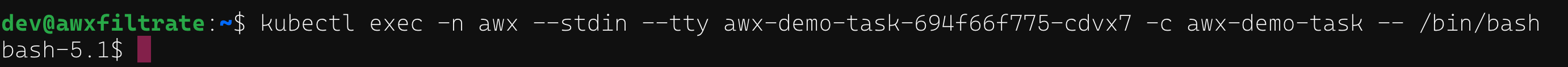 This is the container that you will want to execute into in order to interact with the secret management engine of AWX. Below is a screenshot of getting a shell into this container in our testing environment: